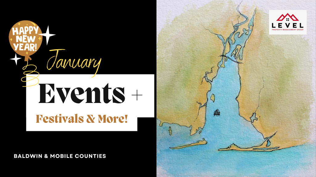 Happy New Year from Level Property Management Group! January is one of our favorite months along the Gulf Coast—cooler temps, fewer crowds, and a calendar packed with Mardi Gras “firsts,” winter concerts, big races, family-friendly attractions, and can’t-miss shows across Baldwin and Mobile Counties.